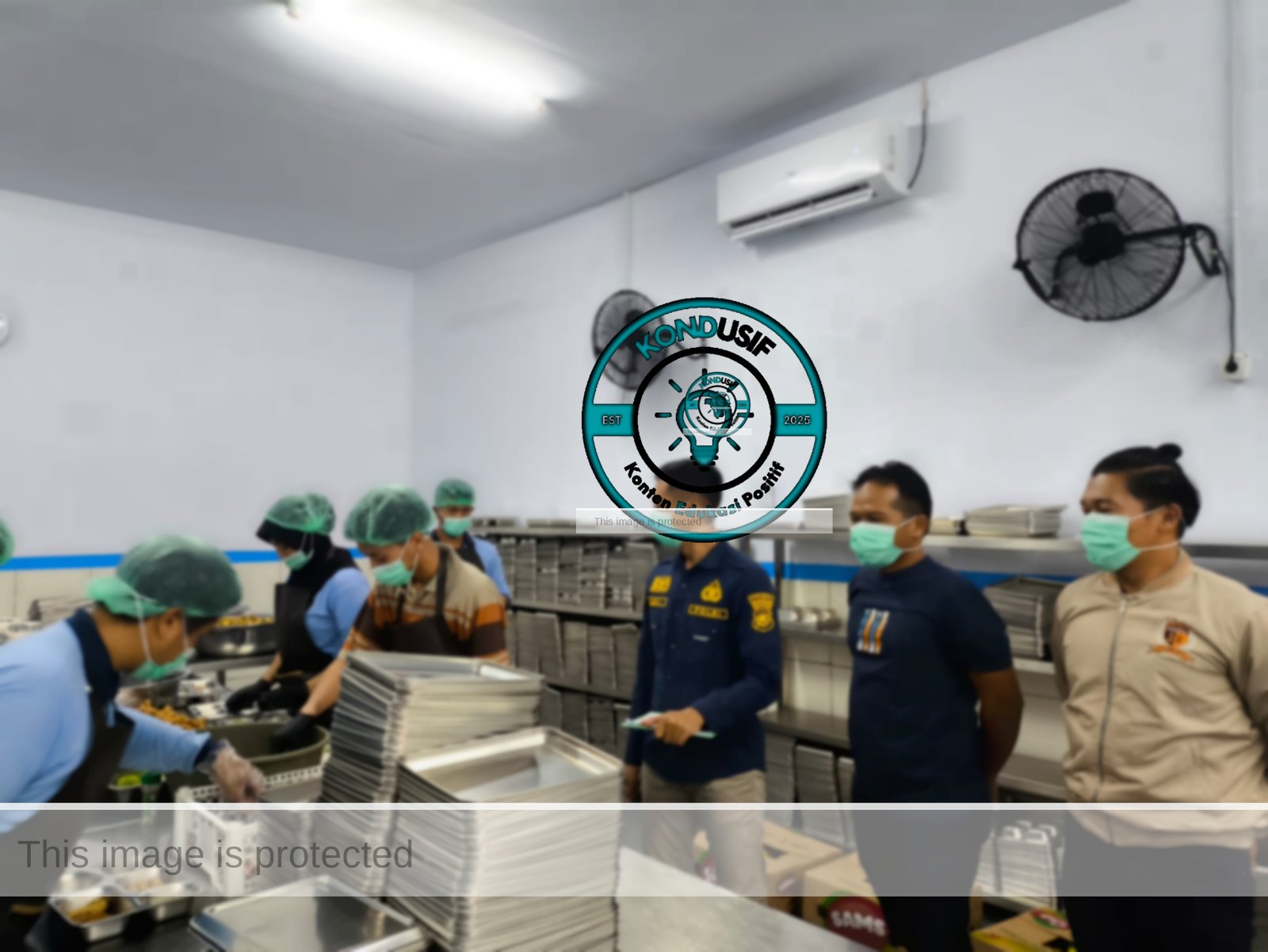 Selain itu, makanan kering untuk distribusi Sabtu juga turut diperiksa. Menu terdiri dari bolu SMK, susu, buah jeruk, dan kacang Shanghai.
