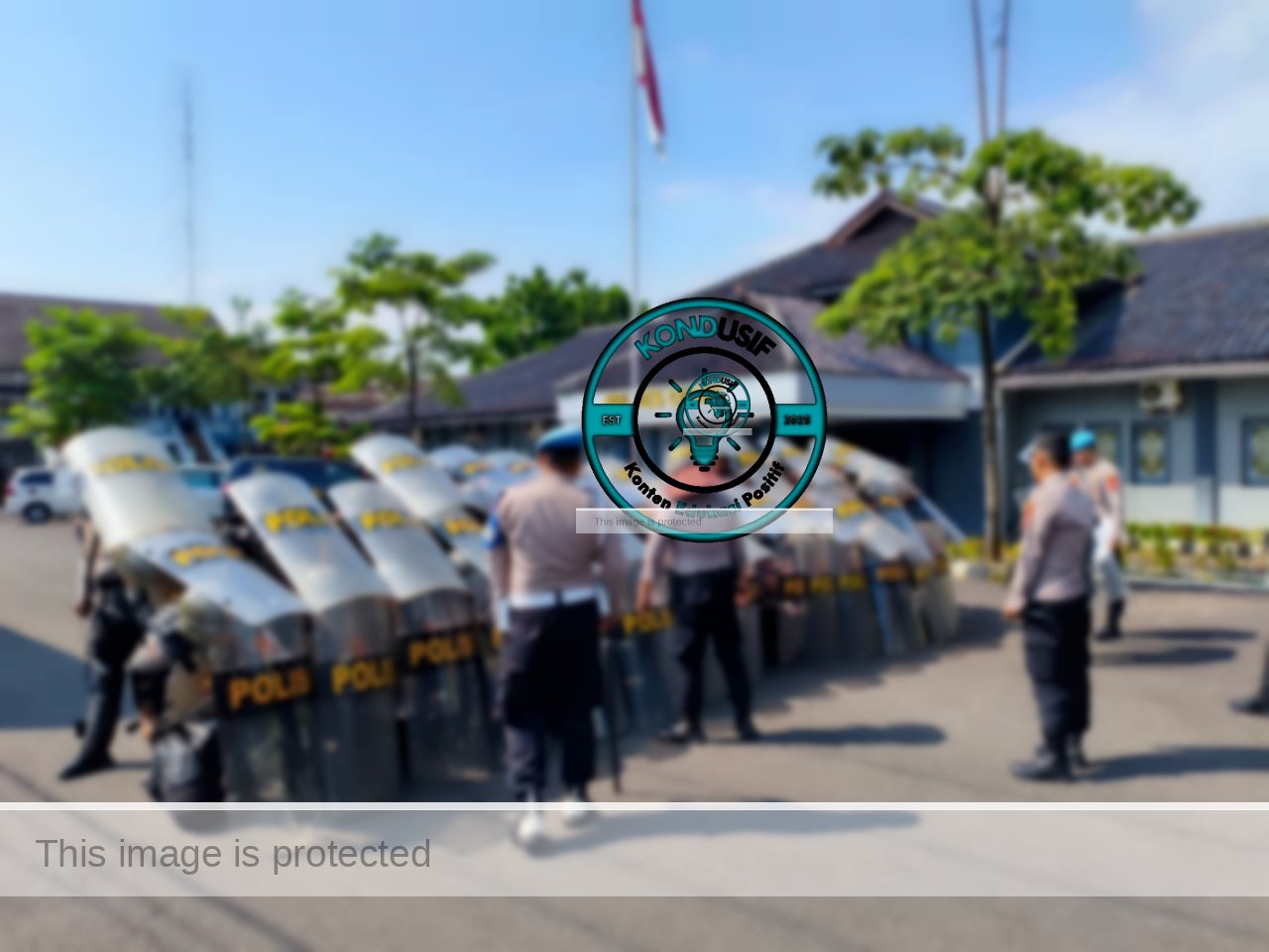 Para polisi ini nampak serius mempraktikkan berbagai formasi pengamanan di bawah terik matahari.