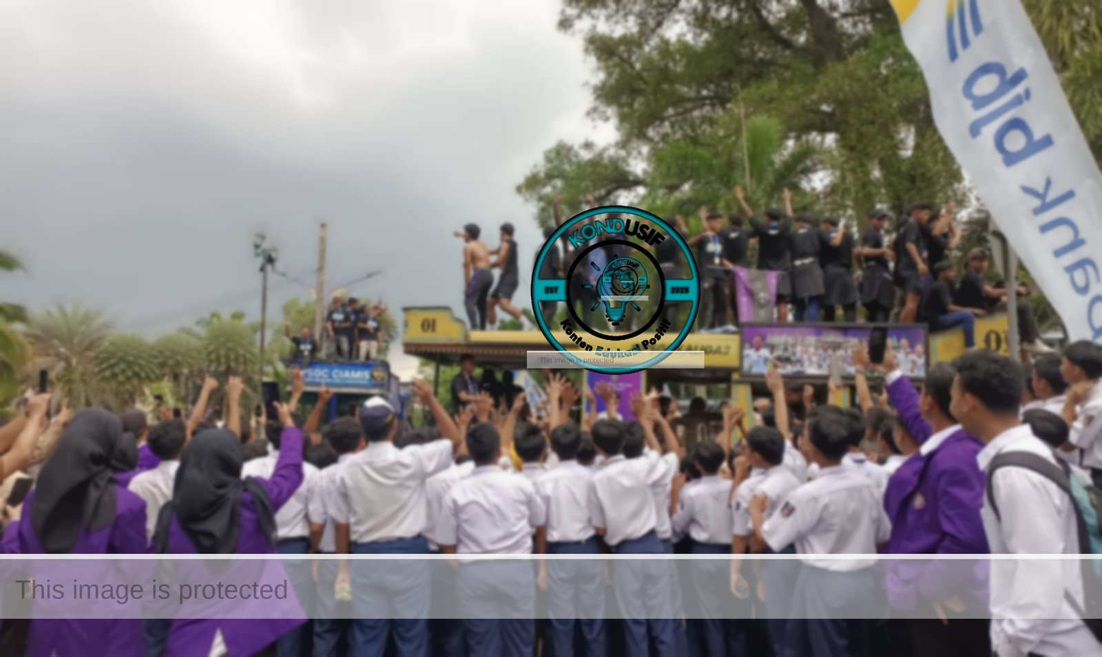 Menariknya, kemeriahan ini tidak hanya didominasi oleh suporter fanatik. Di sepanjang jalur Jl. Ir. H. Juanda hingga kawasan Saripohaci, nampak barisan pelajar Sekolah Dasar (SD) dan SMP yang berdiri rapi di pinggir jalan.