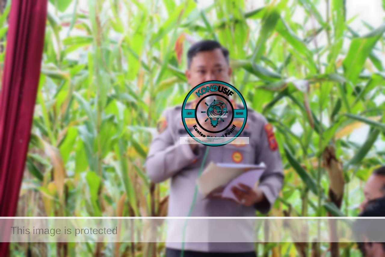 Kapolres Ciamis AKBP H. Hidayatullah, S.H., S.I.K., didampingi Ketua Bhayangkari Cabang Ciamis Ny. Melda Hidayatullah, bersama Ketua TP-PKK Kabupaten Ciamis Hj. Kania Herdiat menghadiri panen raya jagung Kelompok Tani Kencana Mukti 1 di Desa Linggapura, Kecamatan Kawali.