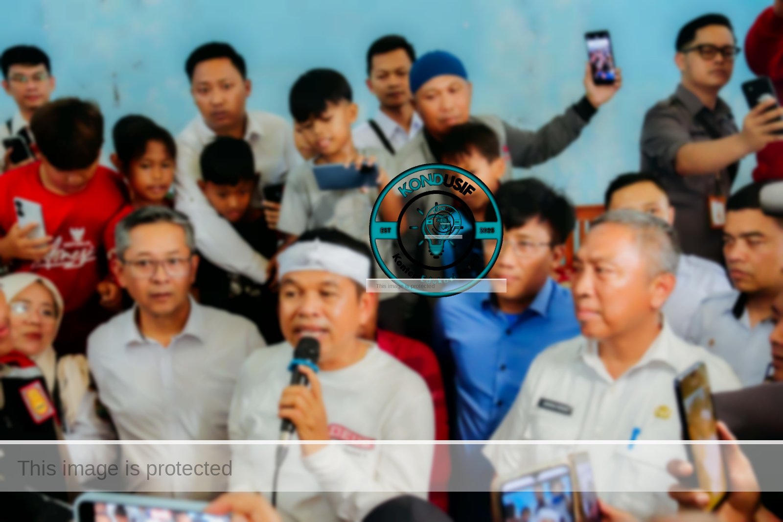 ​Langkah kaki KDM yang tiba pukul 15.30 WIB segera terkepung oleh ribuan warga yang memadati area kantor desa.