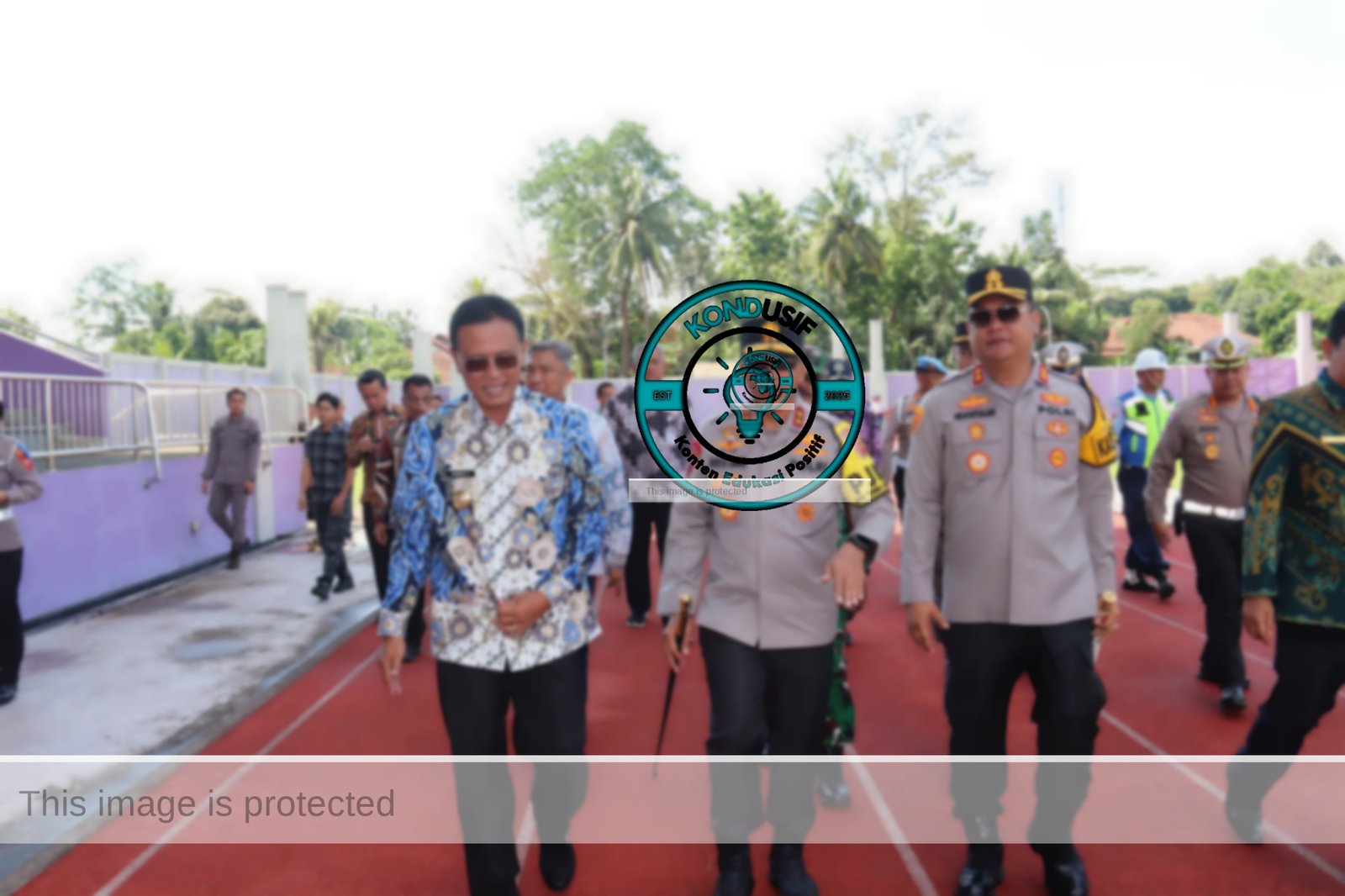 Bupati Ciamis H. Herdiat Sunarya bersama Kapolres Ciamis AKBP H. Hidayatullah dan unsur Forkopimda menyambut Kapolda Jabar di Stadion Atletik Prabu Linggabuana, Kelurahan Linggasari, sesaat setelah helikopter yang ditumpangi mendarat.