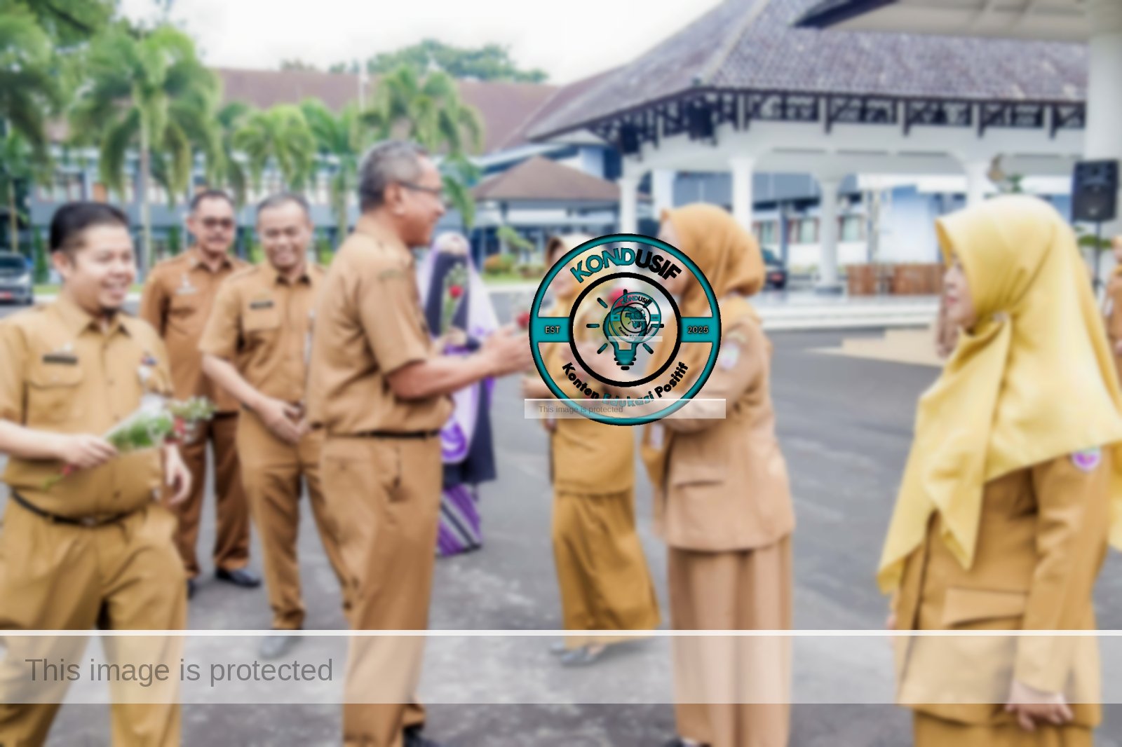 Sontak, aksi ini mencuri perhatian ratusan peserta apel. Tanpa basa-basi, pimpinan apel langsung menyerahkan buket bunga sebagai simbol penghormatan dan rasa terima kasih atas pengabdian panjang mereka di lingkungan Pemkab Ciamis.