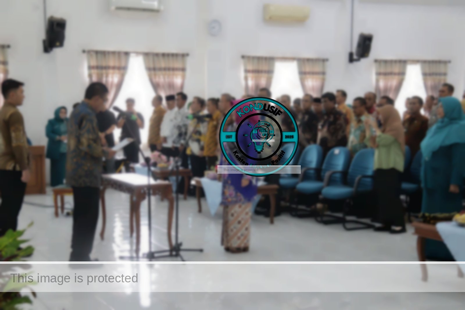 “Kalau camatnya laki-laki, otomatis ibunya yang dilantik. Tapi kalau camatnya perempuan, bapaknya yang dilantik. Walaupun agak susah, ya, kalau suaminya jadi Ketua PKK,” ucap Herdiat disambut tawa hadirin.