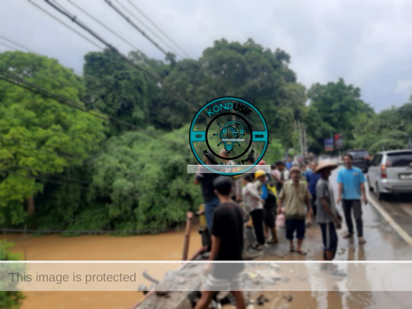 Kemudian, kondisi jalan yang licin membuat kendaraan tergelincir dan masuk ke Sungai Cimuntur.