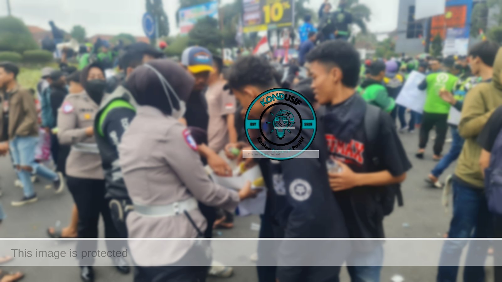 Polres Garut menerjunkan personel dengan pola pengamanan humanis. Selain menjaga ketertiban, petugas juga membagikan air mineral, kue, dan permen kepada peserta aksi sebagai bentuk pelayanan publik.