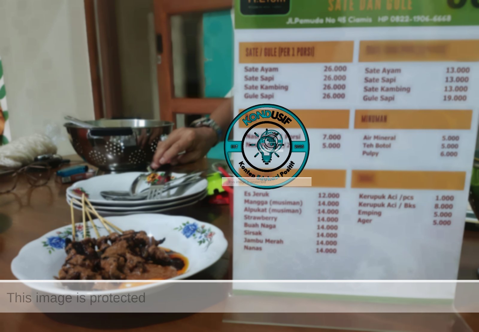 Menu andalannya tentu saja sate dan gule, dengan pilihan daging ayam, sapi, dan kambing.